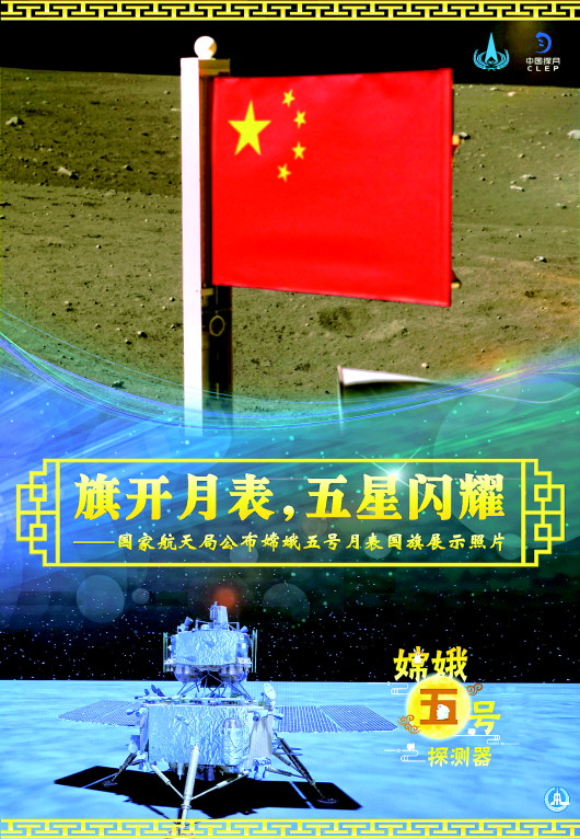 国家航天局公布嫦娥五号月表国旗展示照片