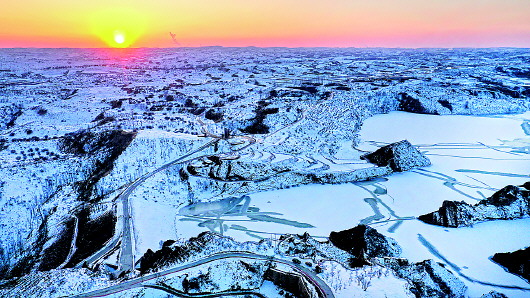 近日,位于黄土高原的陕西省榆林市麻黄梁黄土地质公园雪后初霁,美景如画(12月3日摄)。