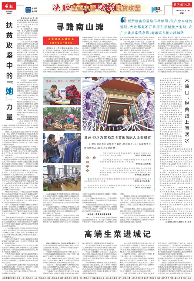 | ( 2020-12-07 ) 稿件来源:新华每日电讯 决胜全面小康·决战脱贫攻坚 |