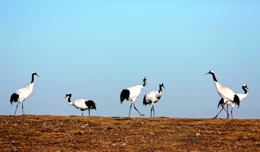 冬日,丹顶鹤在位于黑龙江省的扎龙国家级自然保护区内飞舞、嬉戏,构成一道靓丽的风景。