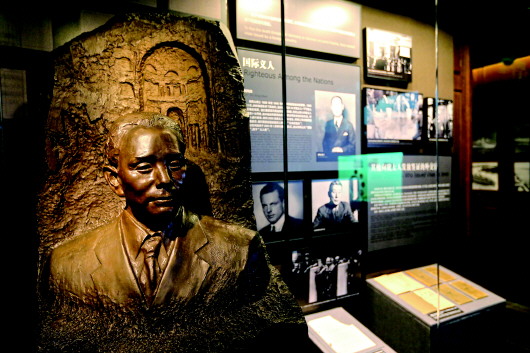 这是上海犹太难民纪念馆内陈列的何凤山塑像(12月8日摄)。何凤山有“中国的辛德勒”之称。1938年至1940年,何凤山担任中国驻奥地利维也纳总领事期间,向数千犹太人签发了“生命签证”,使他们得以逃脱纳粹魔爪。