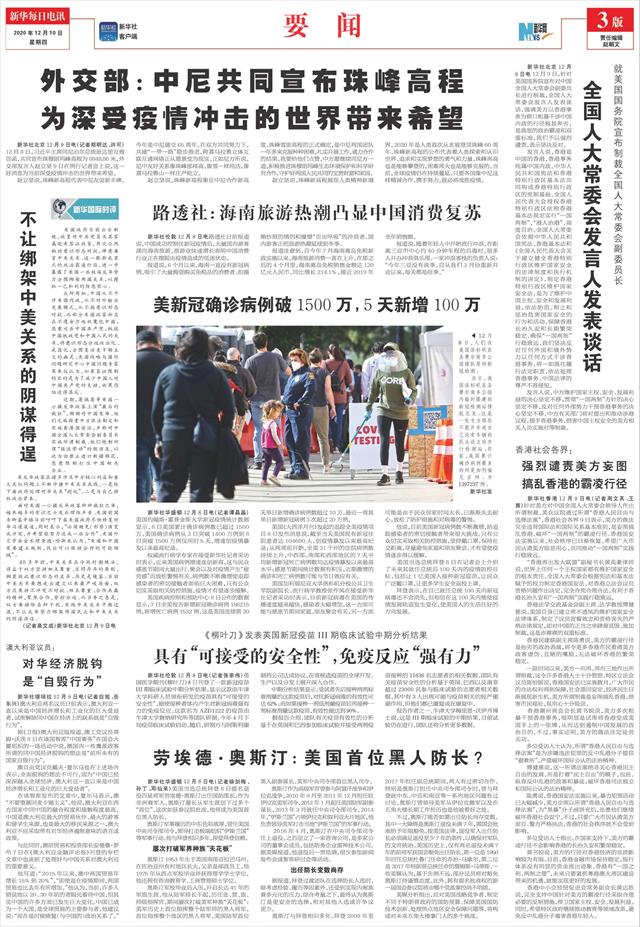 | ( 2020-12-10 ) 稿件来源:新华每日电讯 要 闻 |