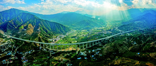 攀大高速公路(四川境)的中坝大桥。近日,全长约41公里的四川攀枝花至云南大理高速公路(四川境)全面建成并试通车。 新华社发