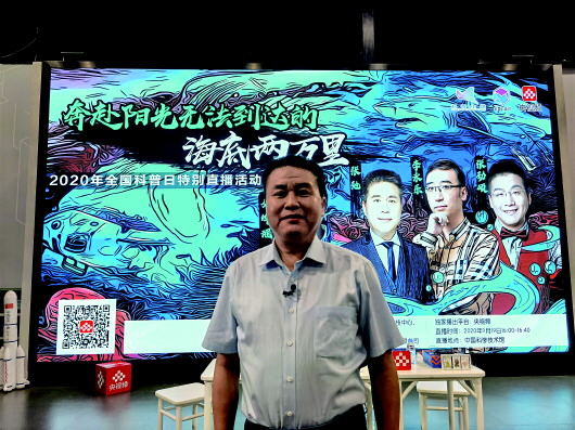 2020年9月,张弛在中国科学技术馆做科普直播。 受访者供图