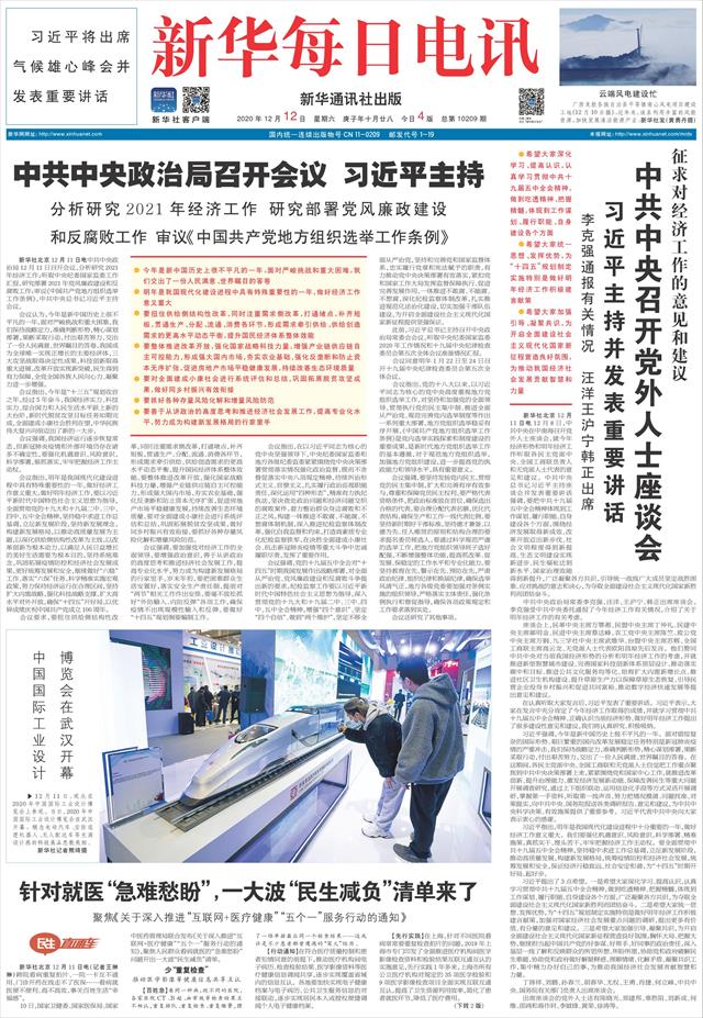 ( 2020-12-12 ) 稿件来源:新华每日电讯 要 闻