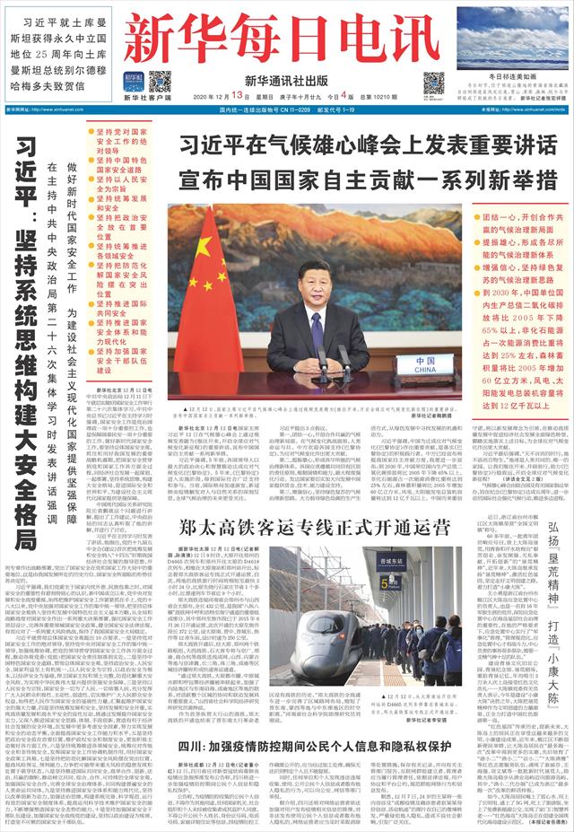 | ( 2020-12-13 ) 稿件来源:新华每日电讯 要 闻 |