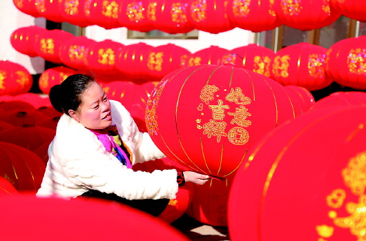 河北邢台市南和区东三召乡依托灯笼制作传统手工技艺,积极发展灯笼制作,带动村民在家门口就业增收(12月14日摄)。 新华社发(张驰摄)