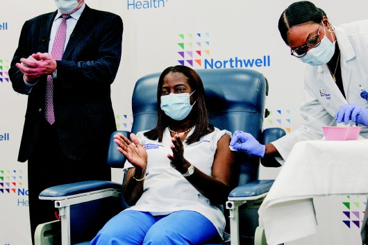 纽约长岛犹太医疗中心重症监护室护士桑德拉·琳赛是首批接种者之一。她对所有疫情一线工作者以及全球为抗击疫情做出不懈努力的人员表示感谢,希望接种疫苗能“成为结束美国历史上这段非常痛苦时期的开端”。