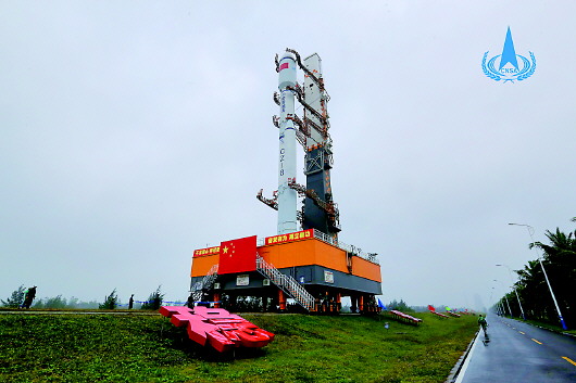 12月16日,长征八号遥一运载火箭在中国文昌航天发射场垂直转运至发射区,计划于12月底择机实施飞行试验任务。 新华社发(国家航天局供图)
