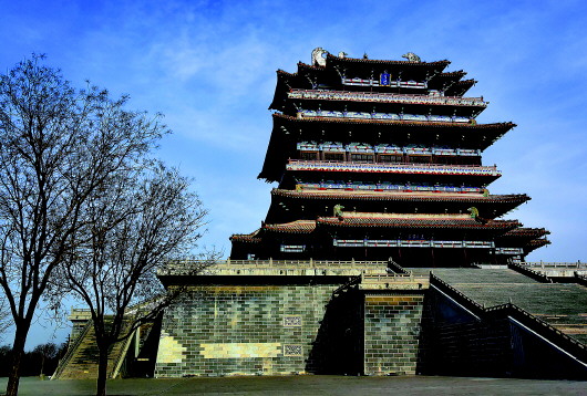 ▲黄河岸边的鹳雀楼,位于山西省永济市蒲州古城。 新华社资料片