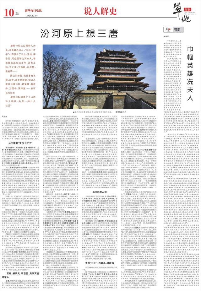 唐代诗坛如果少了蒲州和晋阳的诗人们,少了山西诗人群体,会是一种什么状况?如今回想诗之“三唐”,尤其是“盛唐气象”,真应感谢为中国文化作出贡献的每一位唐代诗人!