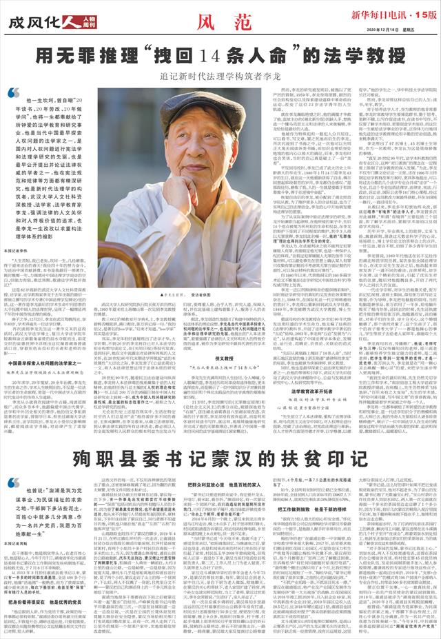 他一生坎坷,曾自嘲“20年读书、20年劳改、20年做学问”,他将一生都奉献给了所钟爱的法学教育和研究事业。他是当代中国最早探索人权问题的法学家之一,是国内对人权问题进行宪法学和法理学研究的先驱,也是最早公开提出并论证法律权威的学者之一。他在宪法规范和规律等方面都有精深研究,他是新时代法理学的构筑者,武汉大学人文社科资深教授、法学家、法学教育家李龙。强调法律的人文关怀和对人终极价值的追求,也是李龙一生孜孜以求重构法理学体系的缩影