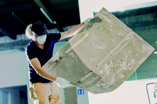 郞水龙开始在工地上做实验:尘埃是以怎样的速度在画布上积累的?用什么材料、如何固定尘埃?那是2014年的夏天。