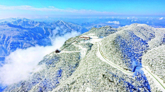 雪后初霁的龙头山景区(12月20日摄)。连续几场瑞雪将川陕交界的汉中市龙头山景区,变成漫山雾凇的童话世界。 新华社记者陶明摄
