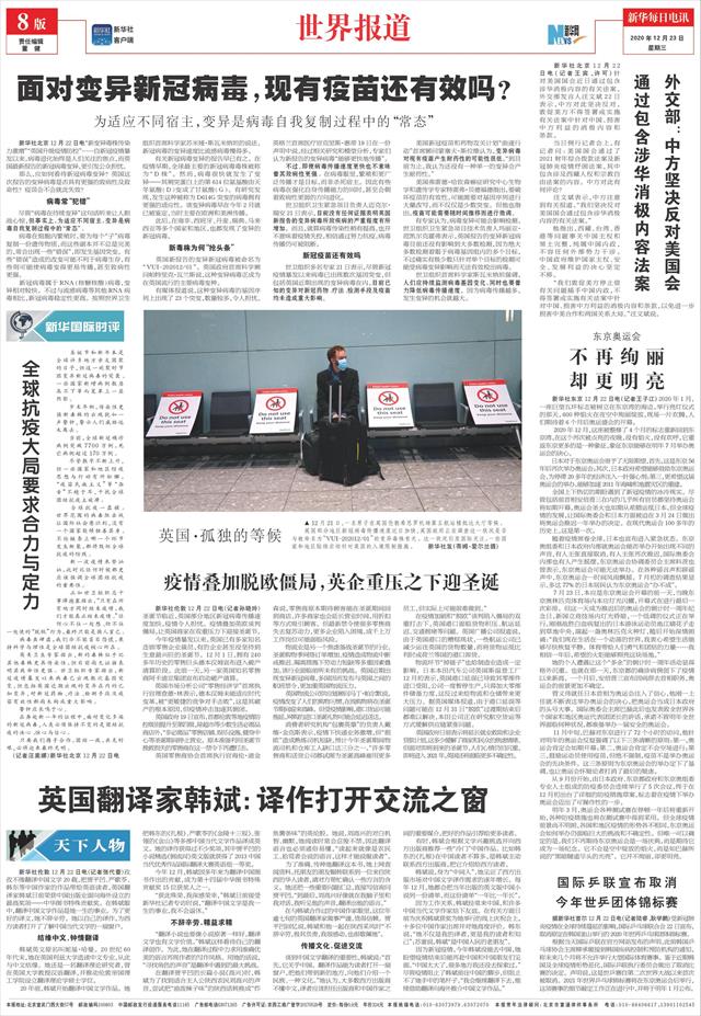 ( 2020-12-23 ) 稿件来源:新华每日电讯 要 闻