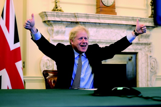 12月24日,英国首相鲍里斯·约翰逊在英国伦敦的首相府庆祝英欧双方达成协议。