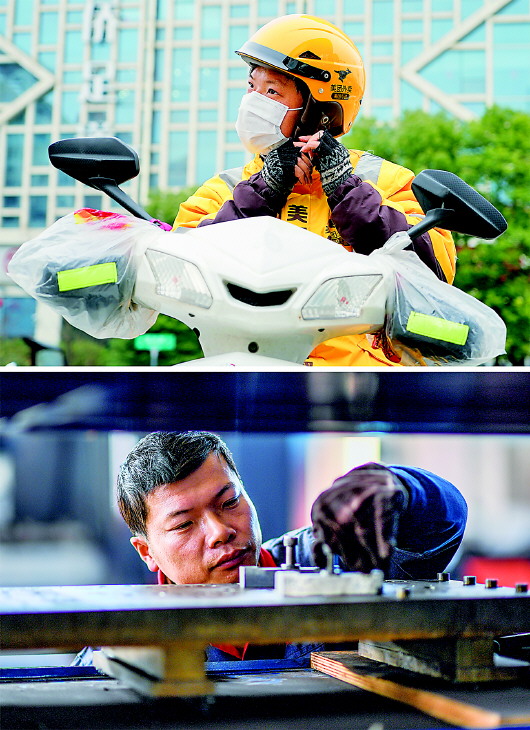 疫情期间一直在南京市区坚持送外卖的陈凯,如今换了份工作。“收入差不多,离家近,还能照顾孩子和老人。”陈凯一边说,一边“照看”着数控机床。