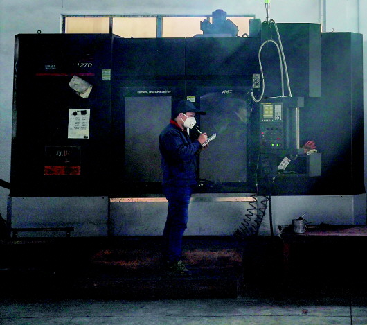 12月16日,陈凯在工厂内记录数控机床显示的数据; |