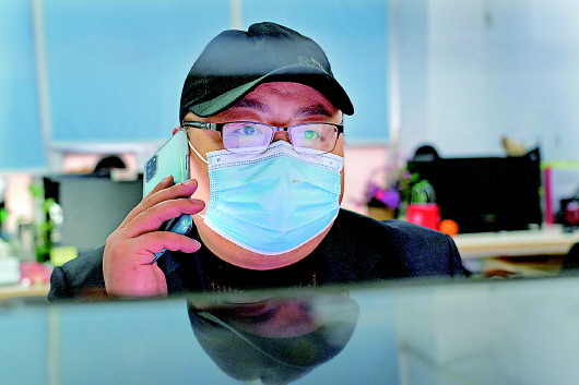 12月21日,在湖北省武汉市江岸区后湖街道惠民苑社区,社区干事丰枫打电话联系工作。   新华社记者才扬摄