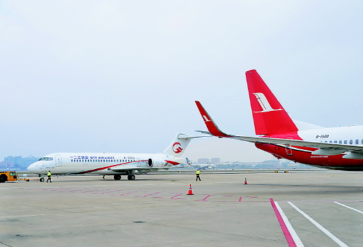 12月28日,在上海虹桥机场,东航新成立的一二三航空有限公司(简称“一二三航空”)首航,执飞首航航班的国产飞机ARJ21从上海飞往北京。