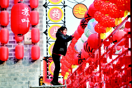 元旦临近,江西省樟树市三皇宫历史文化街区的工作人员悬挂红灯笼,节日气氛浓厚(12月25日摄)。 新华社发(周亮摄)