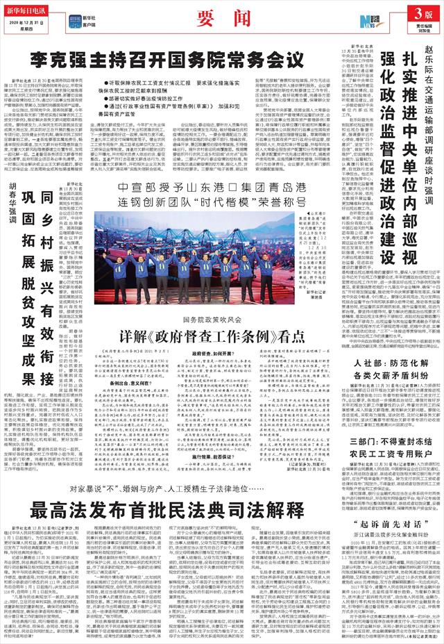 | ( 2020-12-31 ) 稿件来源:新华每日电讯 要 闻 |