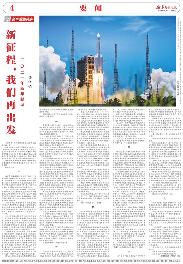 2021年新年,我们站在一个历史新起点上。百年大党风华正茂,新时代中国朝气蓬勃,我们从未像现在这样充满自信、意气风发地奔向未来。