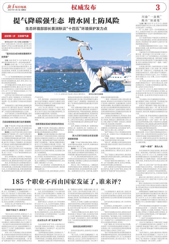 黄润秋:总体上看,“十三五”这五年是迄今为止生态环境质量改善成效最大、生态环境保护事业发展最好的五年,人民群众的获得感、幸福感、安全感显著增强,全面建成小康社会生态环境目标如期高质量完成。