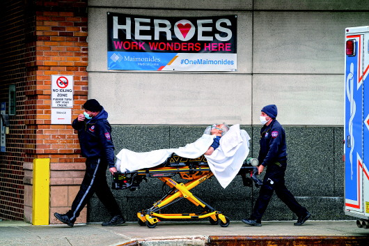 1月1日,在美国纽约,医护人员运送一名患者。美国约翰斯·霍普金斯大学1日发布的新冠疫情最新统计数据显示,美国累计确诊病例超过2000万例。