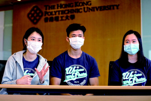 香港理大康复治疗科学系职业治疗学学生接受采访。新华社记者吴晓初摄