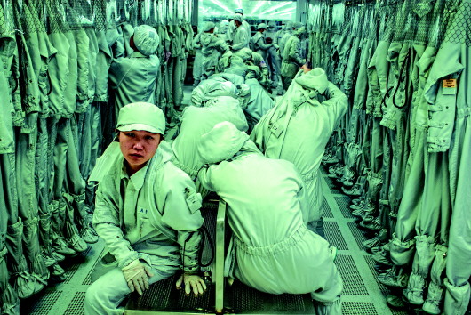 占有兵举起相机,快门声引得女工回头。“我觉得她们眼里在说:‘想从这个环境中挣脱出来’。”