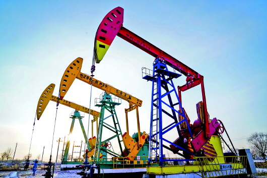 大庆油田2号丛式井组群(1月7日摄)。面对新冠肺炎疫情、国际油价下跌和极端恶劣天气等困难挑战,大庆油田2020年合计完成油气当量4302.9777万吨,继续保持油气当量4000万吨以上。 新华社记者王松摄