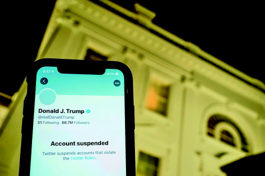 国会大厦遭冲击后,特朗普个人账户发布一段视频,反复指认选举舞弊并称赞示威者。账户随后被禁言12小时。推特当时警告,再有违规,可能永久封禁。另一家社交媒体平台脸书7日决定,封禁特朗普账户至少至20日其任期结束。