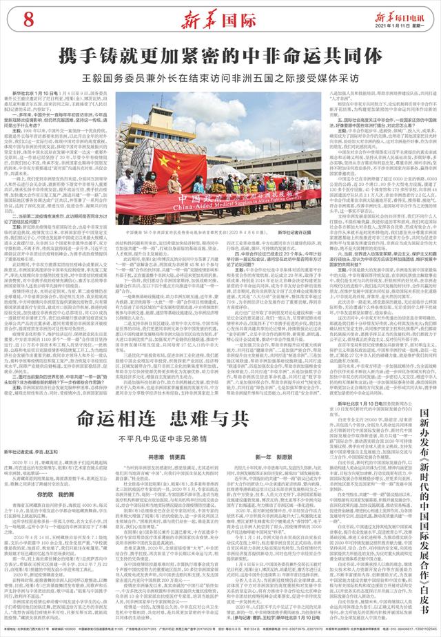 新华社北京1月10日电1月4日至9日,国务委员兼外长王毅应邀访问了尼日利亚、刚果(金)、博茨瓦纳、坦桑尼亚和塞舌尔五国。结束访问之际,王毅接受了《人民日报》记者的采访。内容如下: