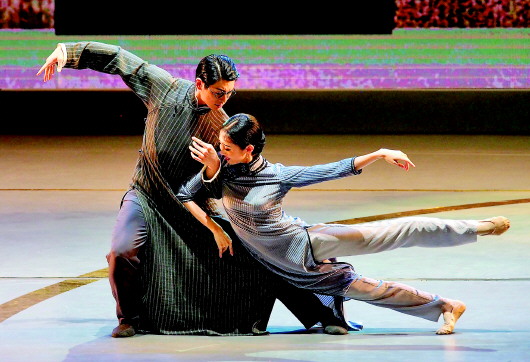 上海歌舞团演员在第十二届中国艺术节闭幕式上汇报演出获得文华大奖的舞剧《永不消逝的电波》选段。