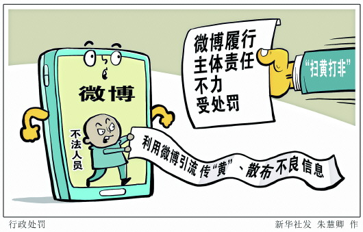 新华社北京1月15日电(记者白瀛、史竞男)全国“扫黄打非”办公室15日通报,一年来,“扫黄打非”部门坚决查处打击不法人员利用微博引流传“黄”、散布不良信息的违法犯罪行为,破获6起刑事案件,并于近日对微博运营企业作出行政处罚。
