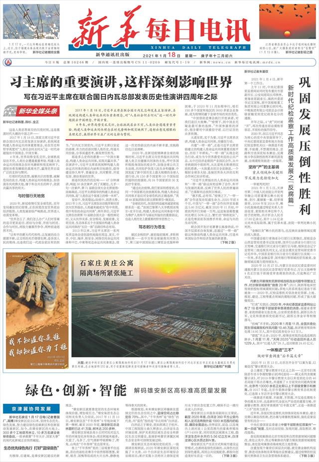 如今,“警钟”再度在世界各地响起:新冠疫情成为一个世纪以来全球最严重的传染病大流行,给国际秩序带来前所未有的冲击。面对异常复杂的国际形势,习近平主席2020年出席联合国成立75周年系列高级别会议期间发表多场重要讲话,阐明中国主张,提出中国方案,呼吁各国跳出小圈子和零和博弈思维,树立人类命运共同体意识,共同维护普遍安全,共同分享发展成果,共同掌握世界命运,其精神主旨与日内瓦演讲一脉相承,赢得广泛认同。