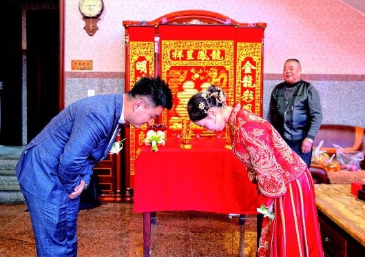 1月18日,新郎陈佳彬和新娘李楠在家里举行简单的拜堂仪式。他们此前已致电亲朋好友,暂缓办喜酒。