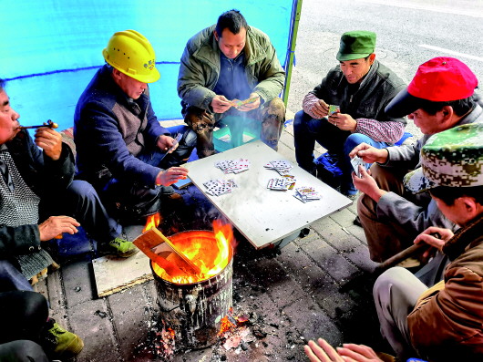 一些居委会也专门安排人员到现场看护,有的贴出了警示牌,告诫农民工在棚内不得有私搭乱接电线、随地吐痰、吸烟饮酒赌博、躺卧过夜居住、燃烧明火等行为;有的张贴了招工信息,方便这些灵活就业人员找到稳定工作;有的提供烤火盆、钢炭,农民工饿了还能烤洋芋吃。