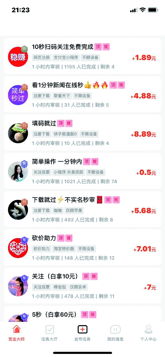 一是利用“网赚”类App收集闲散用户流量。例如在“喜爱帮”“手赚客”等App上,用户按照要求进行转评赞操作,便可获取一定的积分报酬,完成代刷业务,赚取差价。