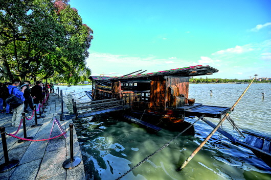 这艘画舫,新中国成立时已难觅踪迹。1959年,南湖革命纪念馆开始筹建。现任馆长张宪义回忆说,建馆的中心是船的复建问题。在多方考证和细致还原后,送往北京的船模得到了认可。经过紧张施工,1959年10月1日前,南湖红船在蓝天秀水间重现。