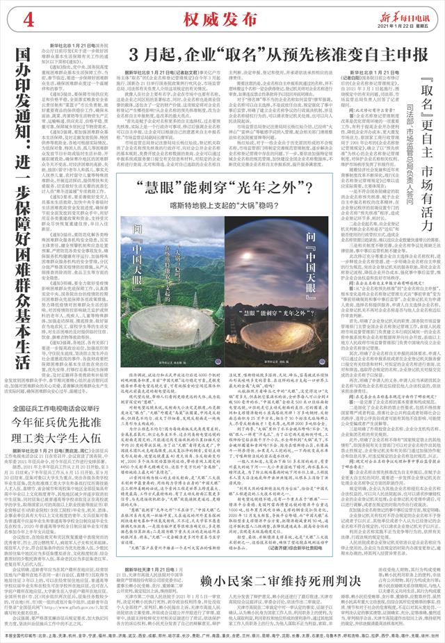 | ( 2021-01-22 ) 稿件来源:新华每日电讯 权威发布 |