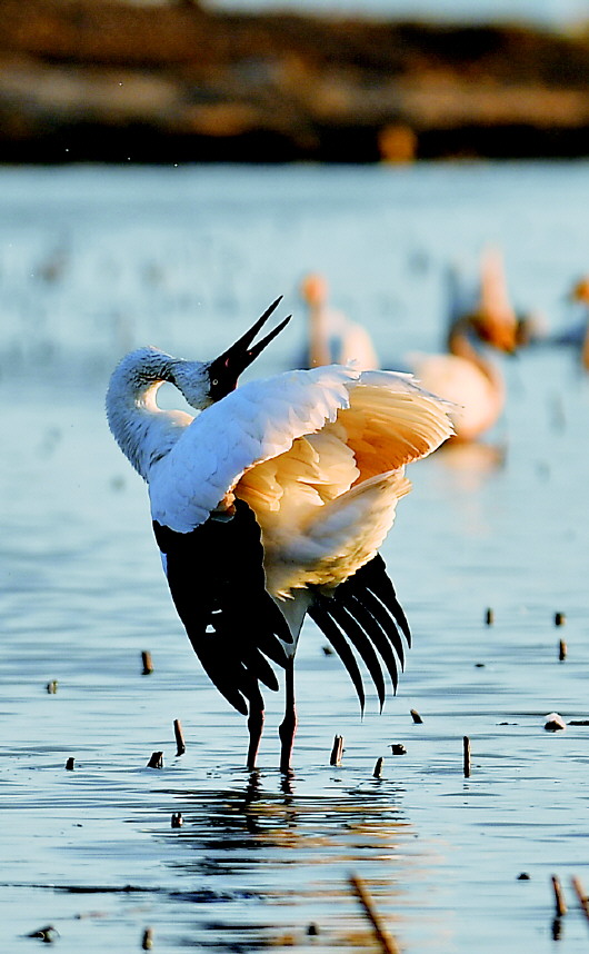 白鹤,地球上生存了6000万年的“活化石”,被世界自然保护联盟列为极危物种。原有东、中、西3条迁徙路线的白鹤种群,只剩下前往鄱阳湖区越冬的东部迁徙路线。