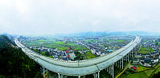 主体工程已经完工的兰海高速重遵扩容工程蒲场特大桥(1月24日摄,无人机全景照片)。蒲场特大桥位于重遵扩容高速公路蒲场枢纽互通与绥遵高速十字枢纽交叉处,是兰海高速重遵扩容项目14标段控制性工程,全长1.61公里。目前,该大桥主体工程已全部施工完成,附属工程预计今年3月初全部施工完成。