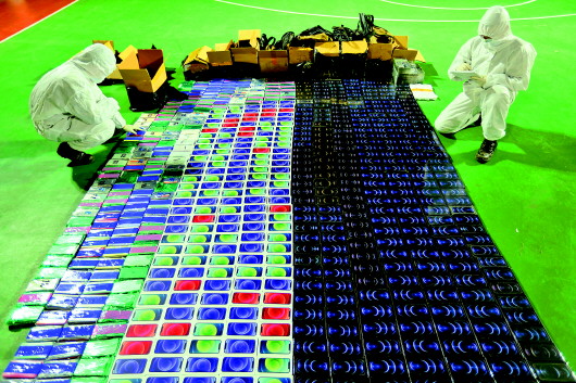 图为武警广东总队执勤第三支队官兵对查获的涉嫌走私物品进行清点(1月1日摄)。 新华社发(廖键摄)