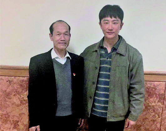 《山海情》男主马得福原型人物谢兴昌与马得福扮演者黄轩合影。受访者供图 |