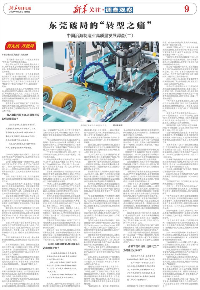 如何破局?怎样转型?对当地众多制造业企业而言,都是一道必答题。尽管行业间差异性较大,转型升级路径各有不同,但从“以产品为中心”向“以客户为中心”转变的理念、从“制造”向“智造”升级的方向,则是基本一致的。