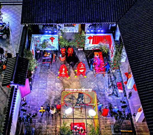 当日,浙江省杭州市余杭区中泰街道紫荆村开启别开生面的“云上村晚”。活动现场分为“村晚直播间”“浙里泰幸福”“记忆中的年味”“好礼送不停”四部分,通过本地融媒体平台网上直播,让当地居民和留在本地过年的外地员工感受新春韵味。 新华社记者徐昱摄