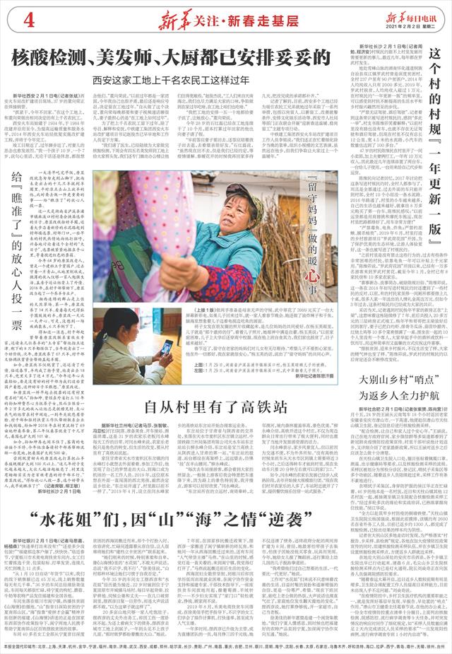 | ( 2021-02-02 ) 稿件来源:新华每日电讯 新华关注·新春走基层 |