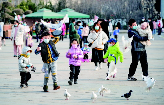 2月1日,几名儿童在石家庄市文化广场上游玩。 新华社记者牟宇摄 |